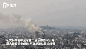 根据社交网站上网友拍摄的视频显示,当时塔尖就可见明火燃烧,烟雾迅速笼罩了圣母院整个顶部。明火燃烧起来约两个小时后,整个屋顶都陷入火海,塔尖已经完全烧毁,东面屋顶也已经烧塌。