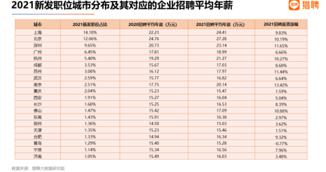 从城市招聘平均年薪来看,深圳23.14万排名前三