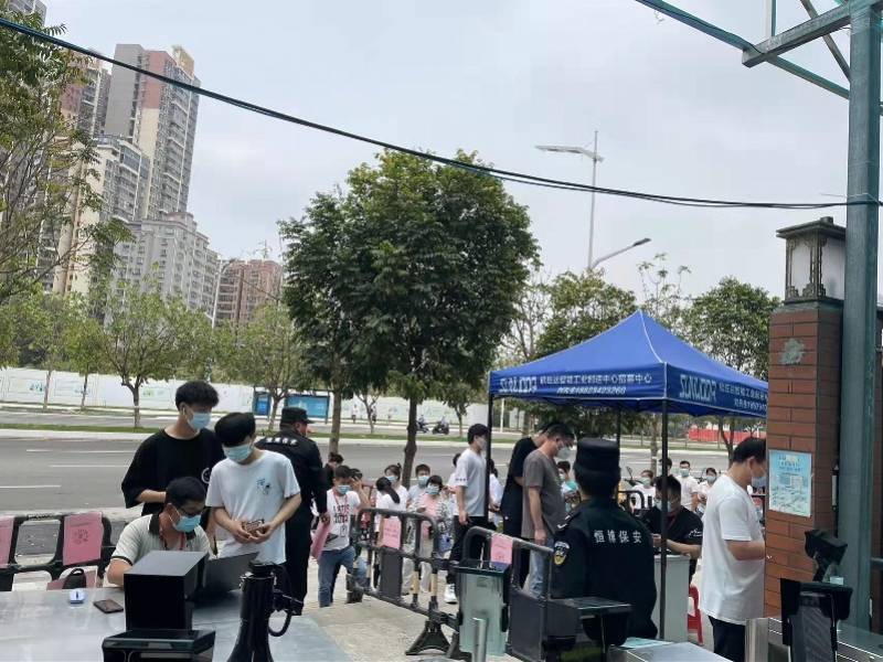 在创新广场入口处,园区设置了扫码区、测温区等,3名身穿防护服的工作人员,对每一名进入办公楼的员工,严格进行体温检测及查验24小时核酸阴性证明。坪山街道在创新广场楼下设置了核酸检测点,持有48小时核酸阴性证明的员工,可在楼下测完核酸后进入办公区域。