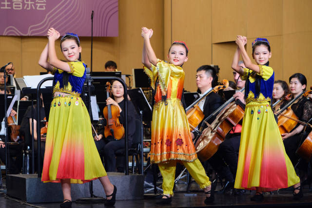 本场音乐会还特别邀请了来自新疆托克逊县郭勒布依乡明园学校和广西大化瑶族自治县板升乡明园学校的乡村孩子们,他们通过舞蹈《我爱新疆》、竖笛合奏《小星星》、竖笛独奏《东方之珠》等精彩表演,诠释了对艺术的热爱、对美好生活的向往。