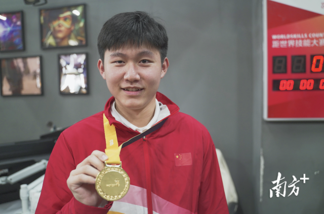 在老师的鼓励下,罗凯重新收拾心情,认真与第45届选手一起学习训练。经历层层选拔,罗凯拿到了2022世界技能大赛特别赛的入场券,终于代表中国站在了世界技能最高水平的竞技场,最后成功摘金。