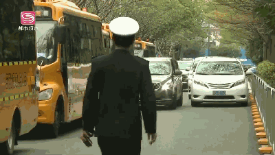 在昨天的交警说法中,熊警官连续两次来到南山白石路,解决学校周边的交通混乱问题。