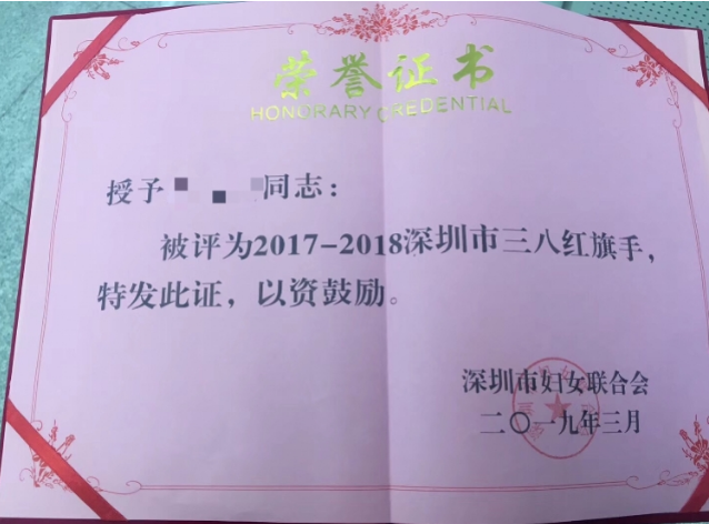 2019年3月8日,深圳市妇女联合协会给深圳市民王女士颁发的深圳市“三八红旗手”荣誉证书,也出现了明显的语法错误。证书中“授予”、“被评为”字眼同时出现,为语义重复的病句,这让人觉得有点匪夷所思。不少网友调侃称“语文没学好,写个奖状也是挺危险的事。”