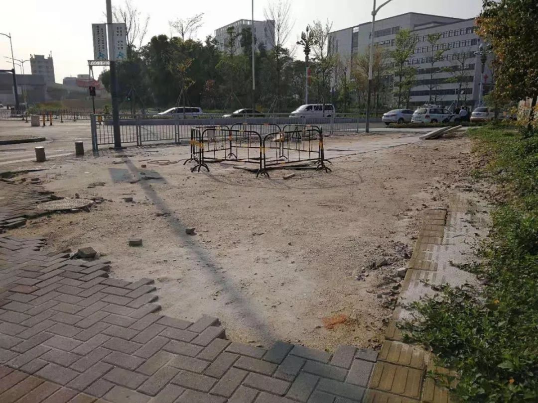 2019年3月11日,深圳交警在路面开展例行巡查,当巡查至田园路与松白路交汇处时,发现人行道砖被挖开,且现场只有简单围挡,没有施工人员在现场看护,存在极大安全隐患。