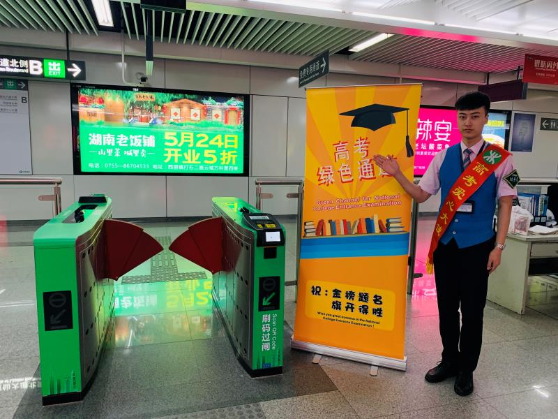 为节省高考考生当天安检排队时间,6月7日至6月8日上午7:00至9:00、下午13:00至15:00期间,车站将为高考考生提供“优先过安检”服务。“乘坐地铁出行的考生可凭身份证和准考证优先过安检、迅速入站。”深圳地铁相关负责人介绍,在开考前30分钟内,车站还将为广大考生开放“绿色通道”,考生只需向车站工作人员出示相关证件,便可通过优惠通道进出站。此外,为方便考生迅速找到考点位置,车站还将在地铁出入口、换乘通道和站厅“绿色通道”等关键位置,设专人提供考场信息的导向指引。