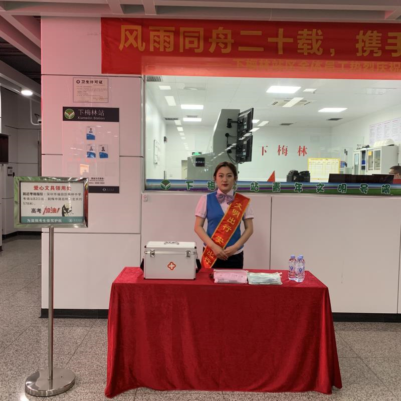与此同时,临近高考考场的地铁车站还专门准备了若干套包含签字笔、2B铅笔、橡皮擦的“爱心文具”,忘带文具的考生可直接前往车站客服中心免费借用。由于高考期间正值入夏,考生可能面临高温天气,深圳地铁也贴心地配备了风油精等防暑用品,帮助考生缓解晕车、紧张、胸闷等可能出现的身体不适。