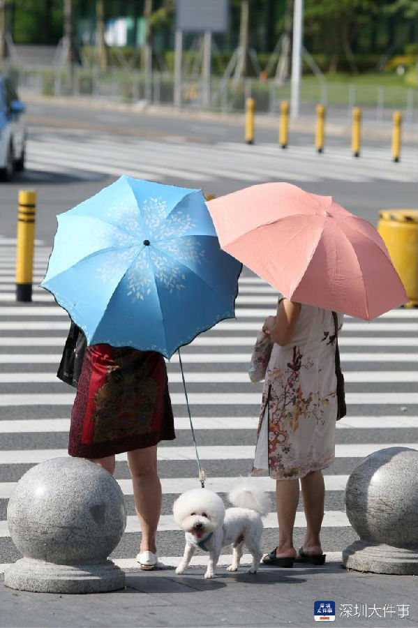 深圳红荔路,打着伞的行人。南都记者 刘有志 摄