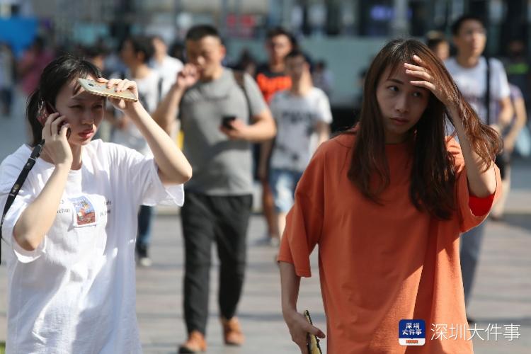 深圳华强北步行街,用手遮阳的女子。南都记者 刘有志 摄
