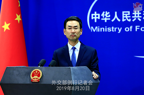 2019年8月20日,外交部发言人耿爽主持例行记者会。