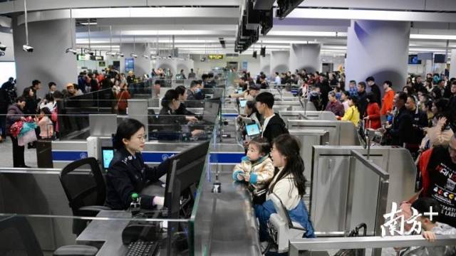 5月1日,新扩建的40条自助查验通道提前正式启用,旅客自助候检场地增加45%,单向客流疏导能力从原来8,400人次/时提升至13,200人次/时,自助通关旅客比例提高到了70%,极大缩短了旅客的通关候检时间。