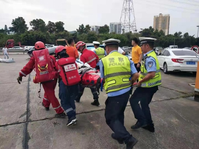 当时,平安产险、东部通航正在荷坳高速路口开展节假日应急救援备勤与道路巡航任务。深圳交警立即组织平安产险、东部通航并联系深圳市急救中心启动直升机紧急救援程序。平安产险、东部通航接到援救任务后立即调配人员及设备组成转院救援小组启动应急预案。交警执勤民警、平安保险现场理赔工作人员、东部通航医护人员迅速把伤者抬上等候直升机。起飞后仅过10分钟,载有伤者的东部通航空客135双引擎医疗构型救援直升机分别两次降落至光明区中山大学附属第七医院,为伤者及时接受治疗争取了宝贵时间。在得到有效的救治后,两位患者伤情稳定。