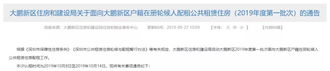 认租人名单确定后,大鹏政府官网会发公告通知选房时间。