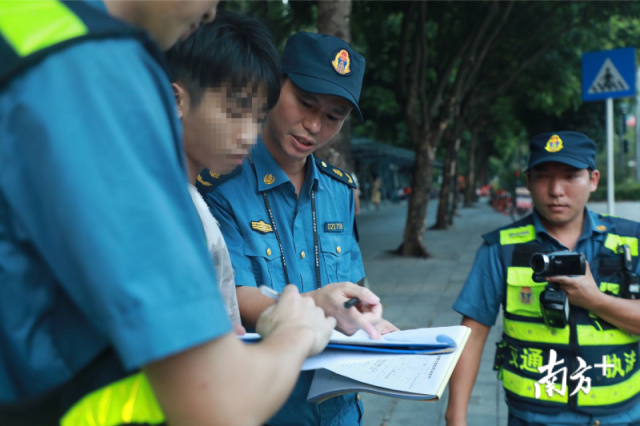 “我刚从广州出差回来,现在急着回家。”15日下午5点半左右,在深圳竹子林地铁站附近的公交站台,一名刚下车的烟民点燃一根烟,被抓现行。他情绪显得有些激动,面对控烟执法,以手掩面,想要匆匆离去。在执法人员的劝说下,该名吸烟者交了50元罚款。