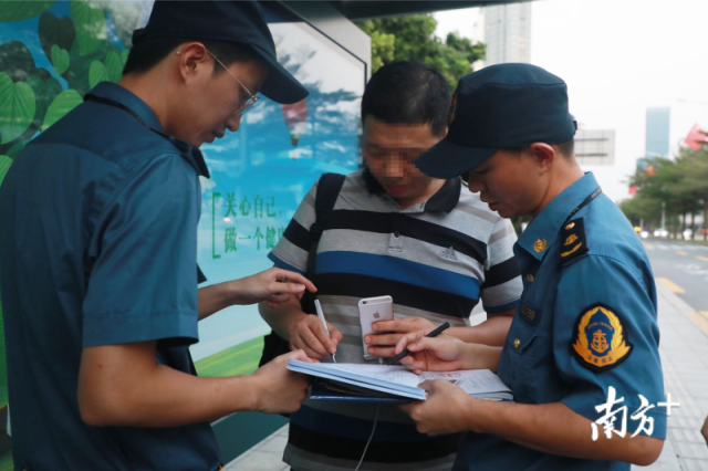 不到1小时,就有6名违法吸烟者在公交站先后被抓,各被罚款50元。