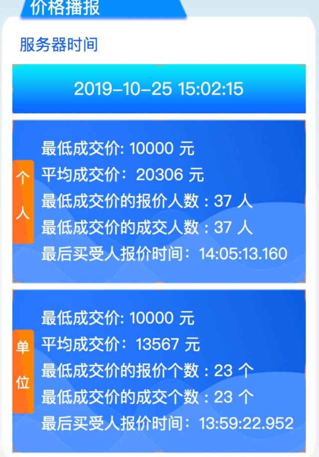 本月广州个人车牌成交最低价为10000元,比上月的20200元低了10200元。个人平均价20306元,较上月的24164元低了3858元。单位车牌方面,最低成交价为10000元,平均成交价为13567元。