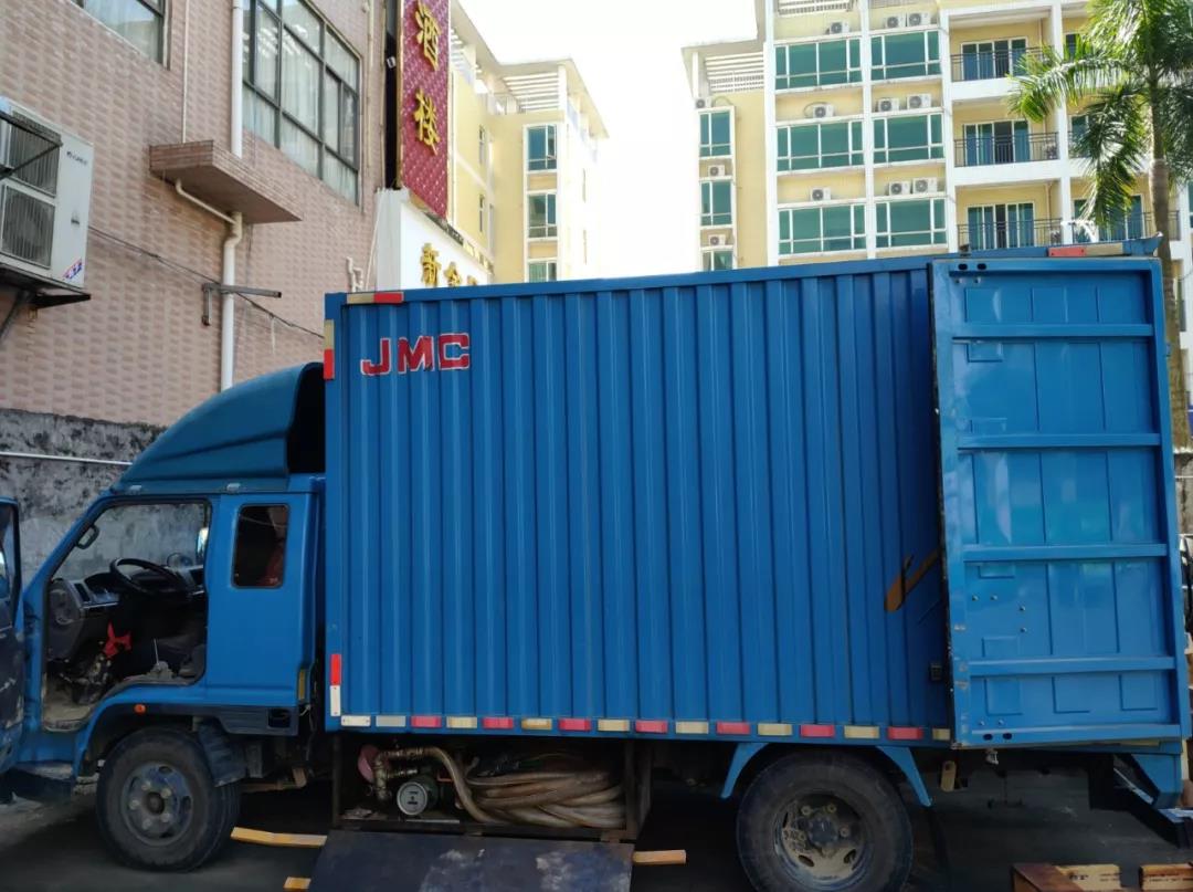 不久,一辆小货车便进入到执法蜀黍的视野。只见该车车身残旧,车头向前倾,轮胎也被压瘪。