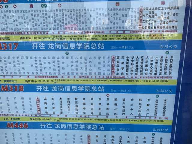 为了求证爆料人的说法,记者首先来到天安数码城公交站求证。根据公交站牌的信息,乘坐M317、M318、M446前往大运地铁站分别需要11站,15站和8站。而根据导航软件上的公交到站时间提示,耗时分别需要38分钟、42分钟和32分钟。