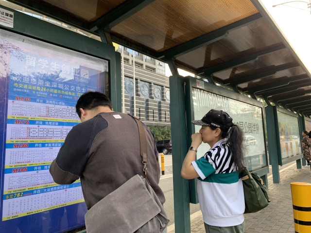 随后,记者来到留学生创业园公交站,只有东莞公交凤岗2路可直达大运地铁站。站牌显示,乘坐该线路只需要经过三站,耗时不到20分钟。上班族们反馈,由于只有一条快速抵达大运地铁站的线路,每当上下班高峰期,这条线路便拥挤不堪。而且,东莞凤岗这班公交车车况不仅没有深圳公交车好,也没有高峰时段,十多分钟才来一辆,所以也是很不方便。