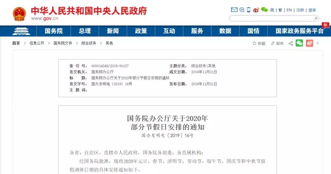 大伙肯定是先关注明年的假期呀