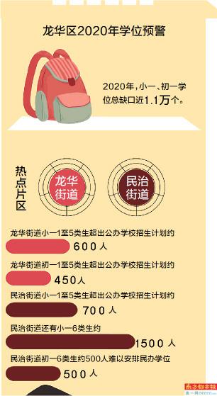 据悉,龙华区教育局在9月启动了2020年全区学位需求的调研工作。经调研,2020年龙华区学位缺口仍然较大,预计小一适龄儿童32807人,小一学位总缺口近8000个;初一适龄儿童少年17408人,初一学位总缺口近3000个。
