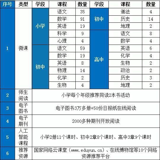 一是南山教育自己的课程新资源。研制以两周为周期的各学段、各学科“网络教学内容列表”,包含专题复习、项目式学习(如博物馆课程)、主题探究等多种形式的内容,其中道德与法制、生物、化学、地理等,都有跟疫情防控、病毒原理等相结合的主题式教学内容。