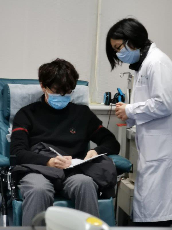 2月16日,儿子听说康复者的血浆可以救助重症患者,二话没说,就捐献了200CC血浆,我为儿子的这份爱心深感自豪!
