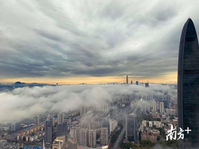 雨后初霁,抬头看天上云雾缭绕,今天的深圳散发出不一样的美。