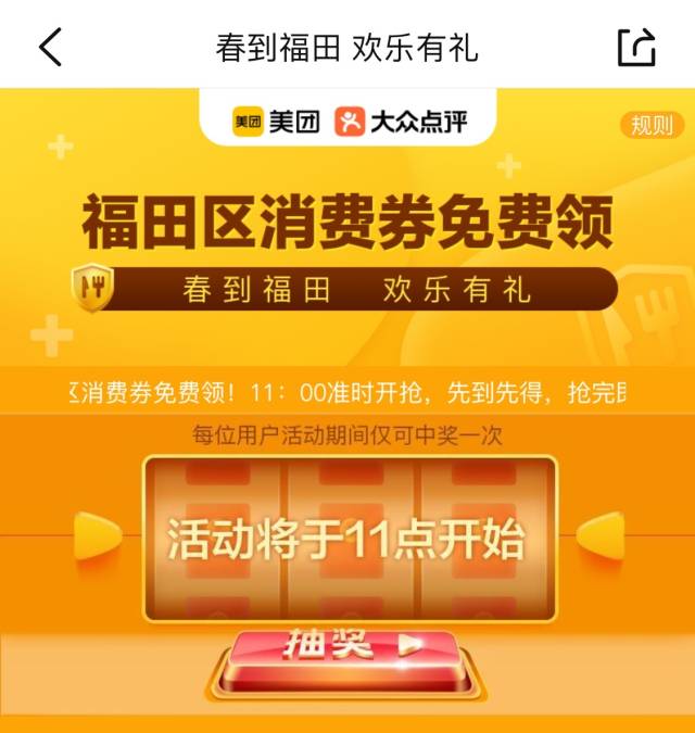 美团、大众点评APP:点击“福田区消费券免费领——乐购福田‘福包’惠民活动”专属界面