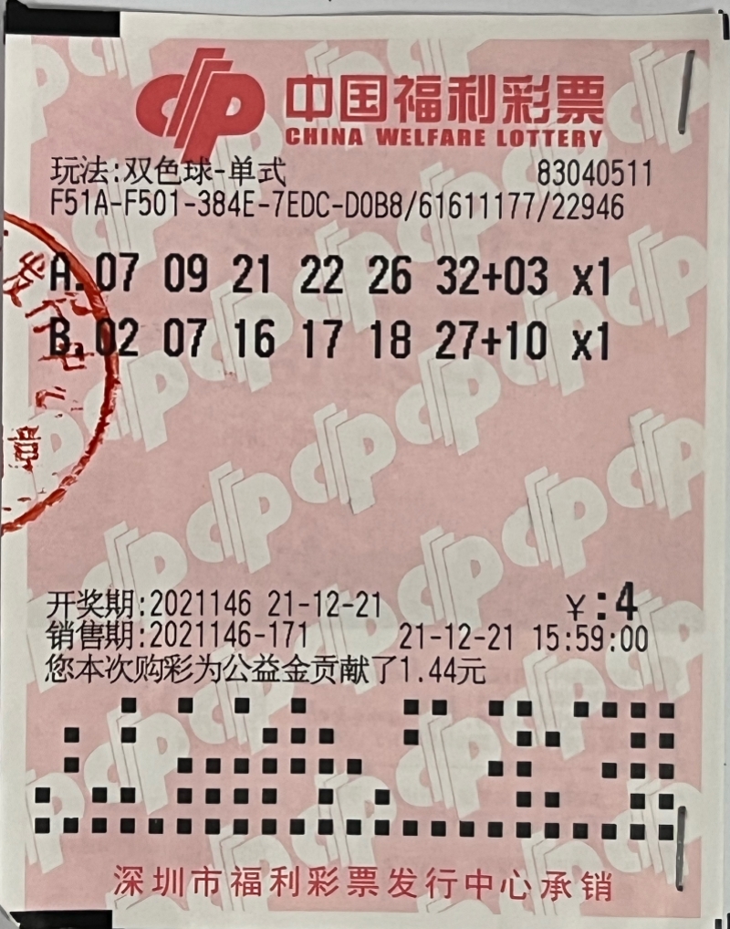 近日,深圳福彩中心服务大厅迎来了一位幸运彩民李先生(化名)。李先生是双色球第2021146期一等奖得主,他凭一张4元的彩票,中得1注一等奖,获得奖金942万多元,这张彩票出大鹏新区大鹏街道大亚湾核电站鹭鸣轩商业楼LA2号83040511投注站。