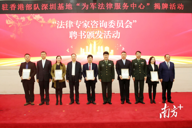 此外,在揭牌仪式上,该中心还打造了两支专业队伍。一是“为军法律服务团”,由福田区司法局牵头招募执业律师组成一支法律义工队伍,其中部分成员曾经有部队服役经历。法律服务团负责提供线上线下法律咨询、指导法律援助、开展普法宣传、代培法律骨干服务。