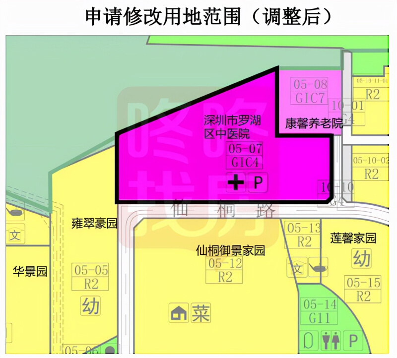 近日,罗湖管理局发布关于[莲塘地区]法定图则05-07地块、05-09地块法定图则调整公开展示的通告。根据通告,[莲塘地区]法定图则05-07地块、05-09地块两个地块合并调整为05-07地块,规划用地性质调整为“医疗卫生用地”,配套设施调整为“医院700床;此地块为建设深圳市罗湖区中医院项目,此前规划有二类居住用的,这次调整后全为医疗用地。医院从原来的400床,增加到700床。