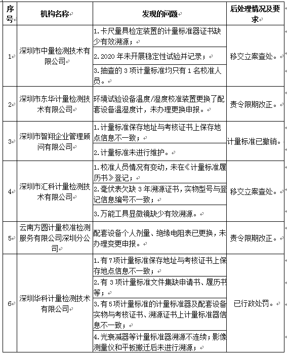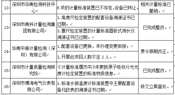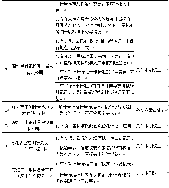 奥一新闻记者获悉,12月28日,深圳市市场监督管理局公布了2021年计量技术机构监督检查情况。本次检查的计量技术机构共25家,其中法定计量检定机构1家、专项计量授权机构1家、计量校准机构23家,抽查计量标准共170项,检定证书、校准报告及原始记录等资料600多份。另外,18家计量技术机构存在问题,包括深圳市计量质量检测研究院、深圳市中量检测技术有限公司、深圳国检计量测试技术有限公司等单位。