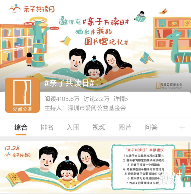 日前,一场萌娃与公益图书馆馆长们隔空对话拉开深圳“亲子共读日”帷幕。作为活动的发起方,深圳市爱阅公益基金会理事长李文坦言,其实目前全世界并没有这个特殊节日存在,但希望推动12月28日定为此节,让所有家庭都知道亲子共读的重要性。