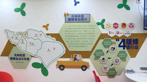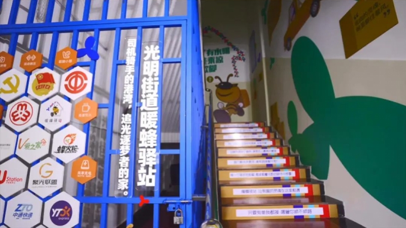 这家“暖蜂驿站”是光明街道建设服务于快递员、外卖送餐员、网约车司机等新就业群体的阵地之一,可提供休息放松、手机充电、无线上网、饮水等暖心服务。