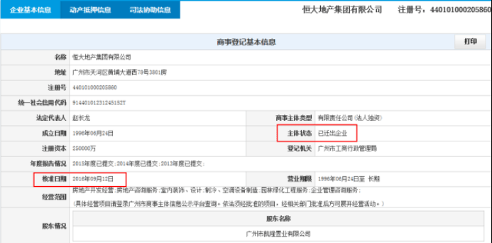 2016年9月14日,恒大借壳深深房完成A股上市,而9月13日,恒大注册信息就从广州迁入了深圳。