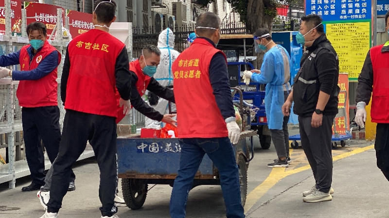“针对居家隔离的住户,我们安排了专门的人员负责外卖和物资的接收和转运工作,基本做到15分钟配送到家”,水径社区工作站站长郑衍朝表示。