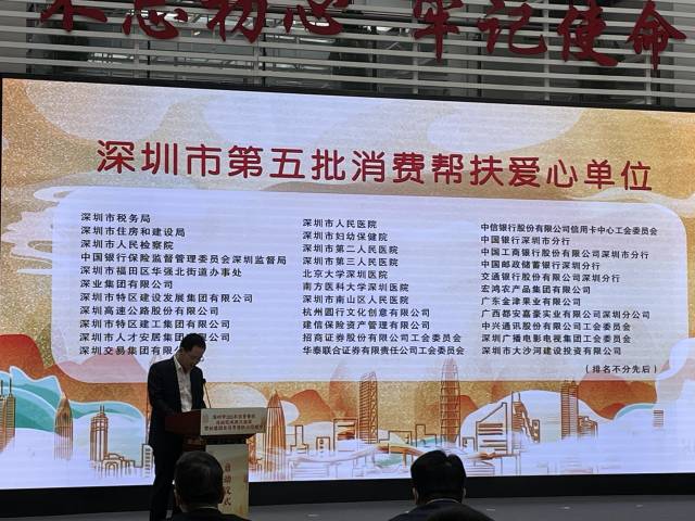 活动现场还宣布“深圳市第五批消费帮扶爱心单位”名单,自开展消费帮扶工作以来,全市各级各部门和社会各界积极参与消费帮扶,助力乡村振兴,深圳市税务局、深圳市住房和建设局等33家单位入选“深圳市第五批消费帮扶爱心单位”名单。