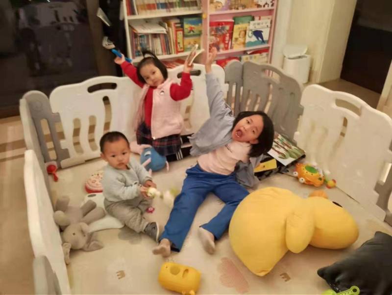 “别人家在小区玩扭扭车,都只能一个孩子扭一个,我们家可以开小火车。别人家在商场玩旋转木马,投币了还空两个位置,我们家能投币不浪费,三个位置全坐满。别人家的爸妈在家里都各自刷手机,我们家客厅永远人声鼎沸。下班刚回家,三个孩子扑上来抱妈妈。”快过年了,Reeka说起放假在家的“神兽”们,竟然有些“凡尔赛”。