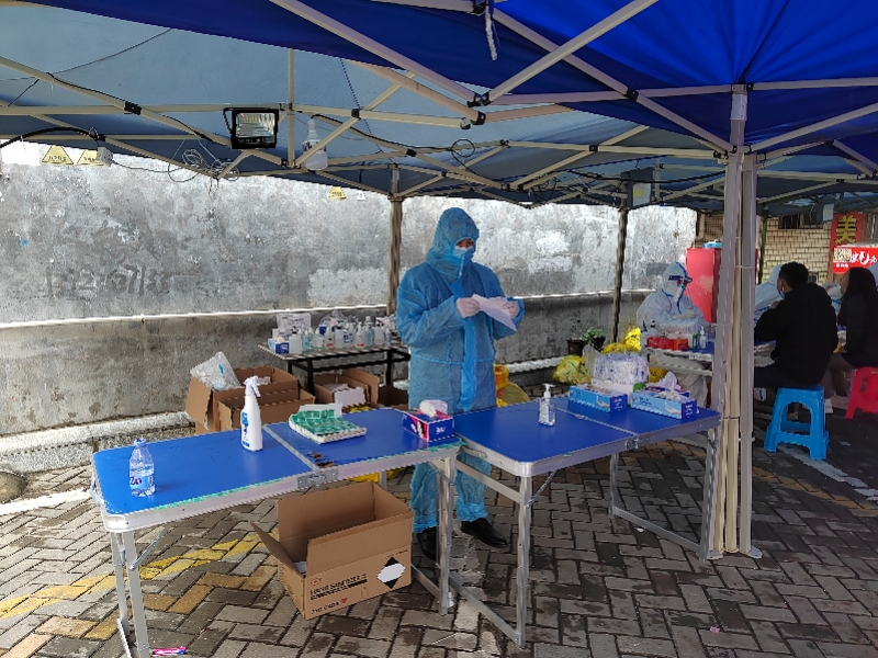 宝安区石岩街道石岩新村是石岩街道规模比较大的核酸检测点。1月31日晚上,这里连夜布置准备开展核酸检测。