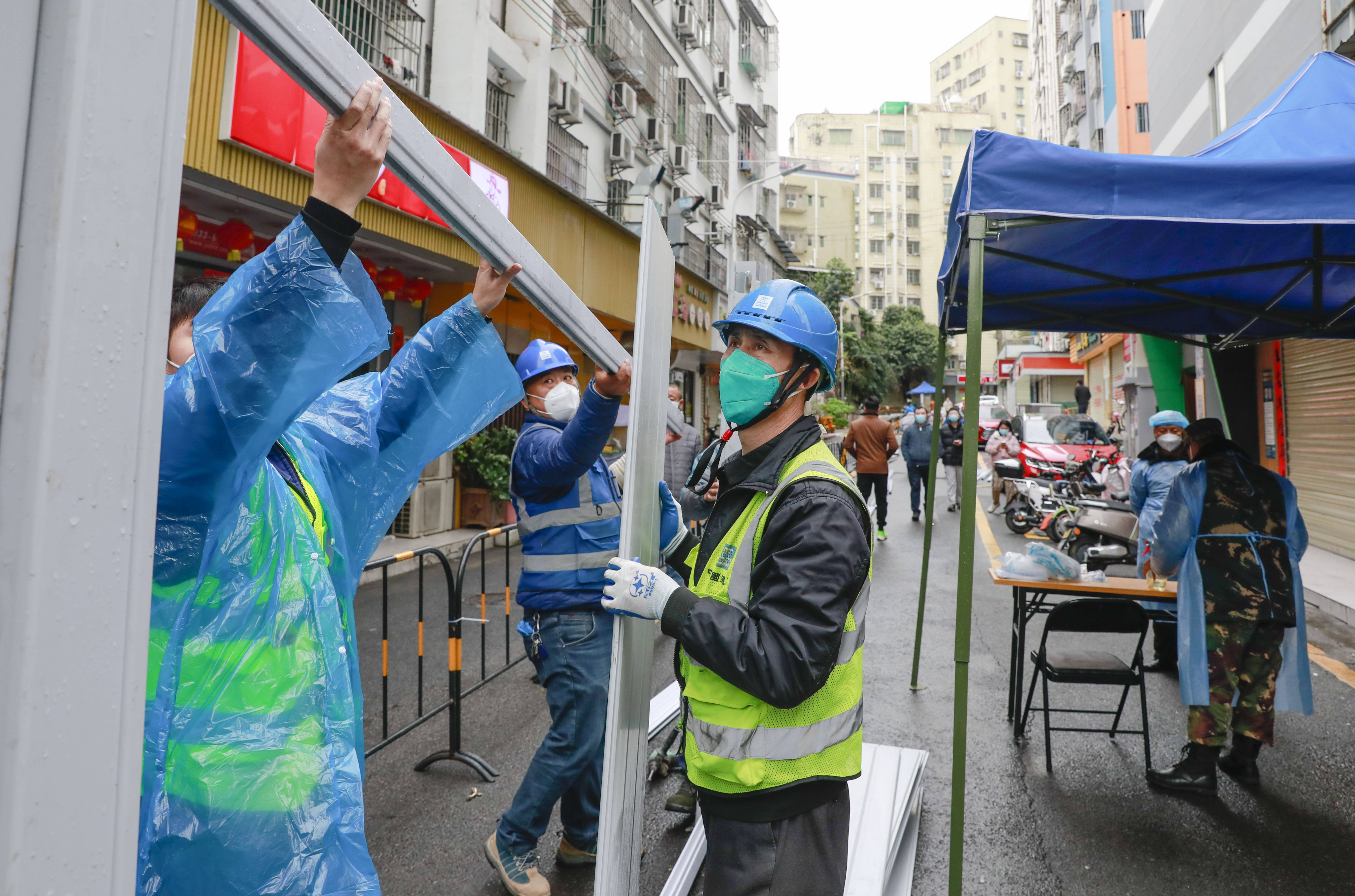 春节期间,深圳市龙岗区坂田街道毫不松懈迎接挑战,在降温降雨中展开区域核酸检测,并全力保障封控管控区物资供应,确保居民安心过节。