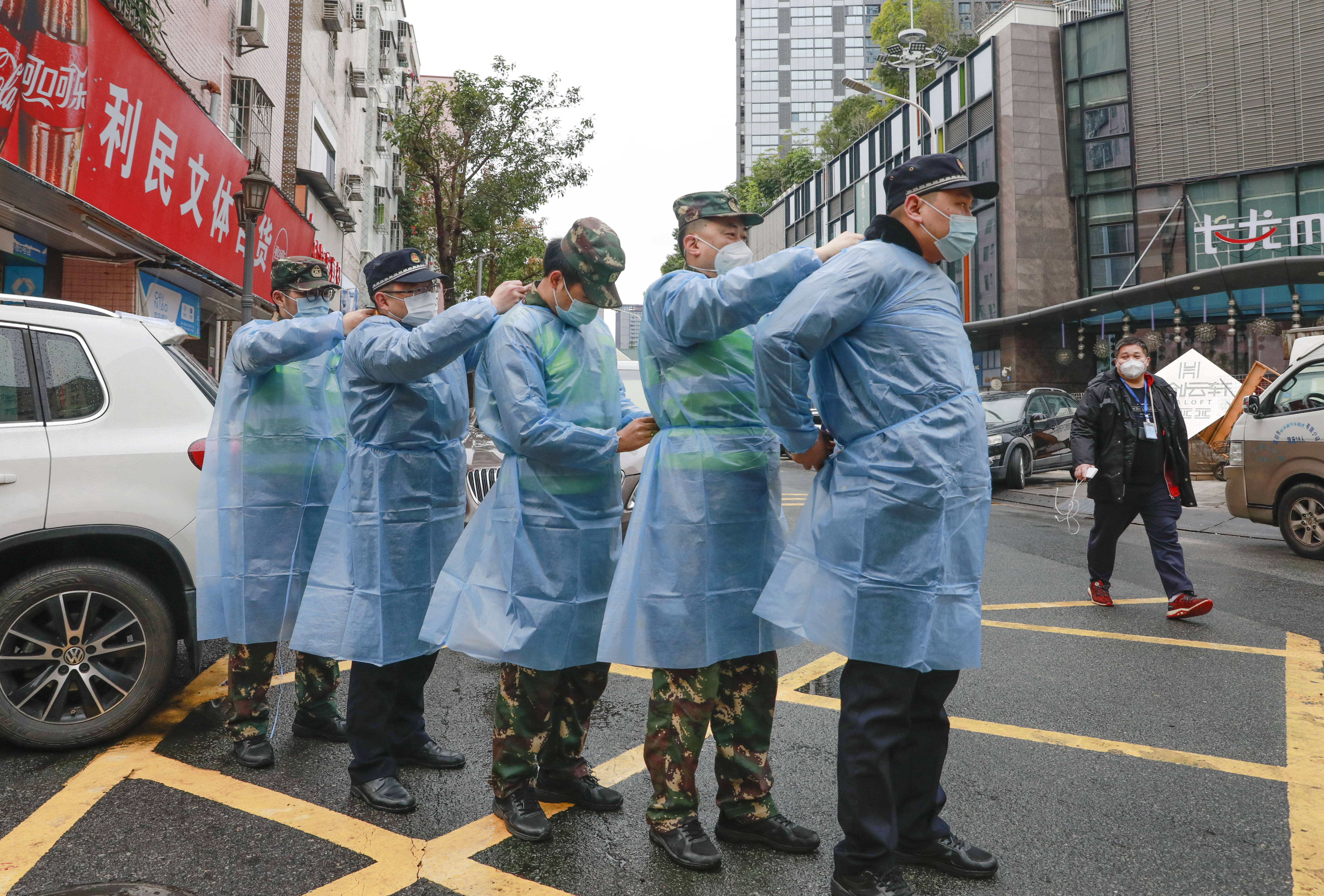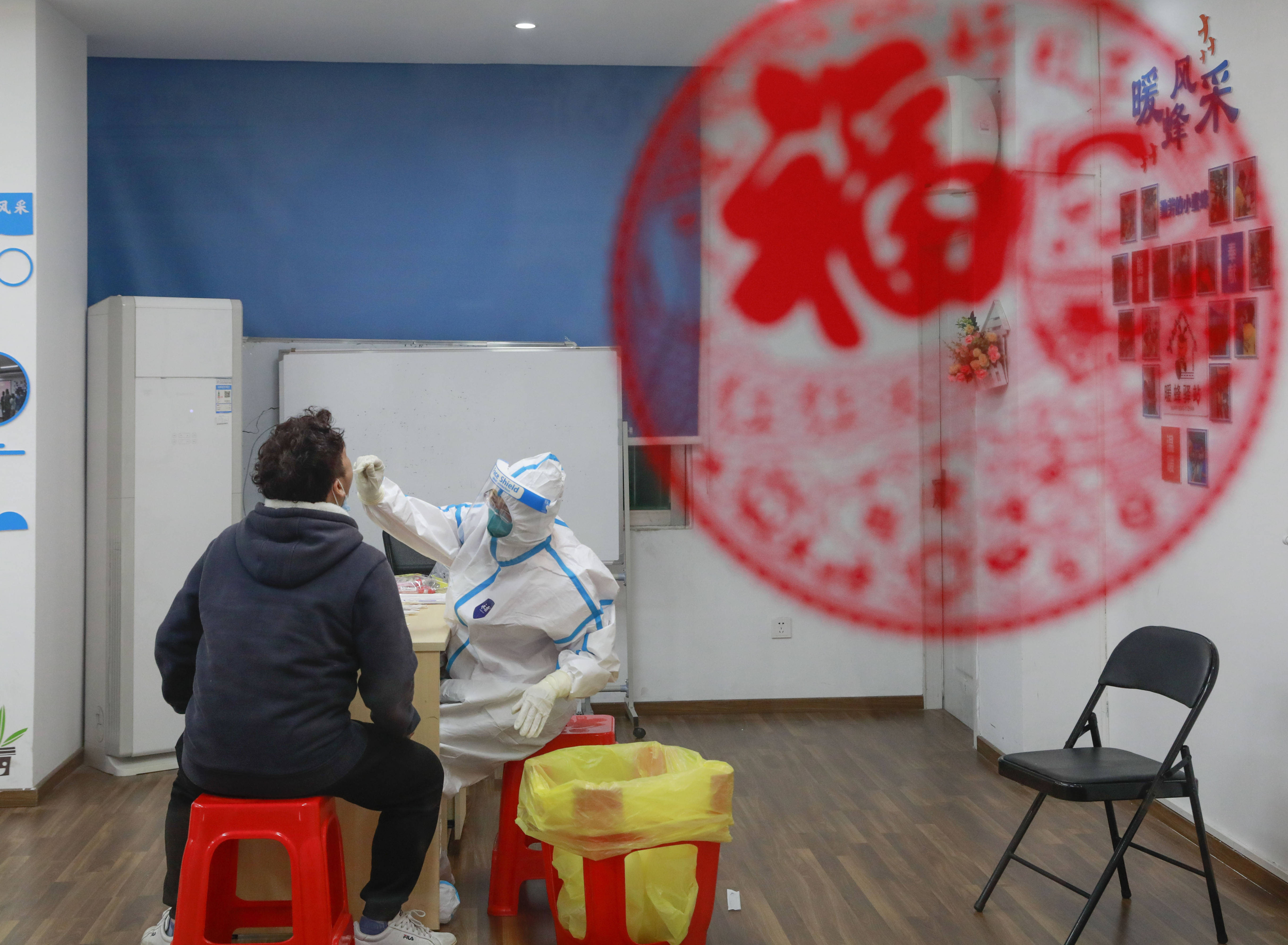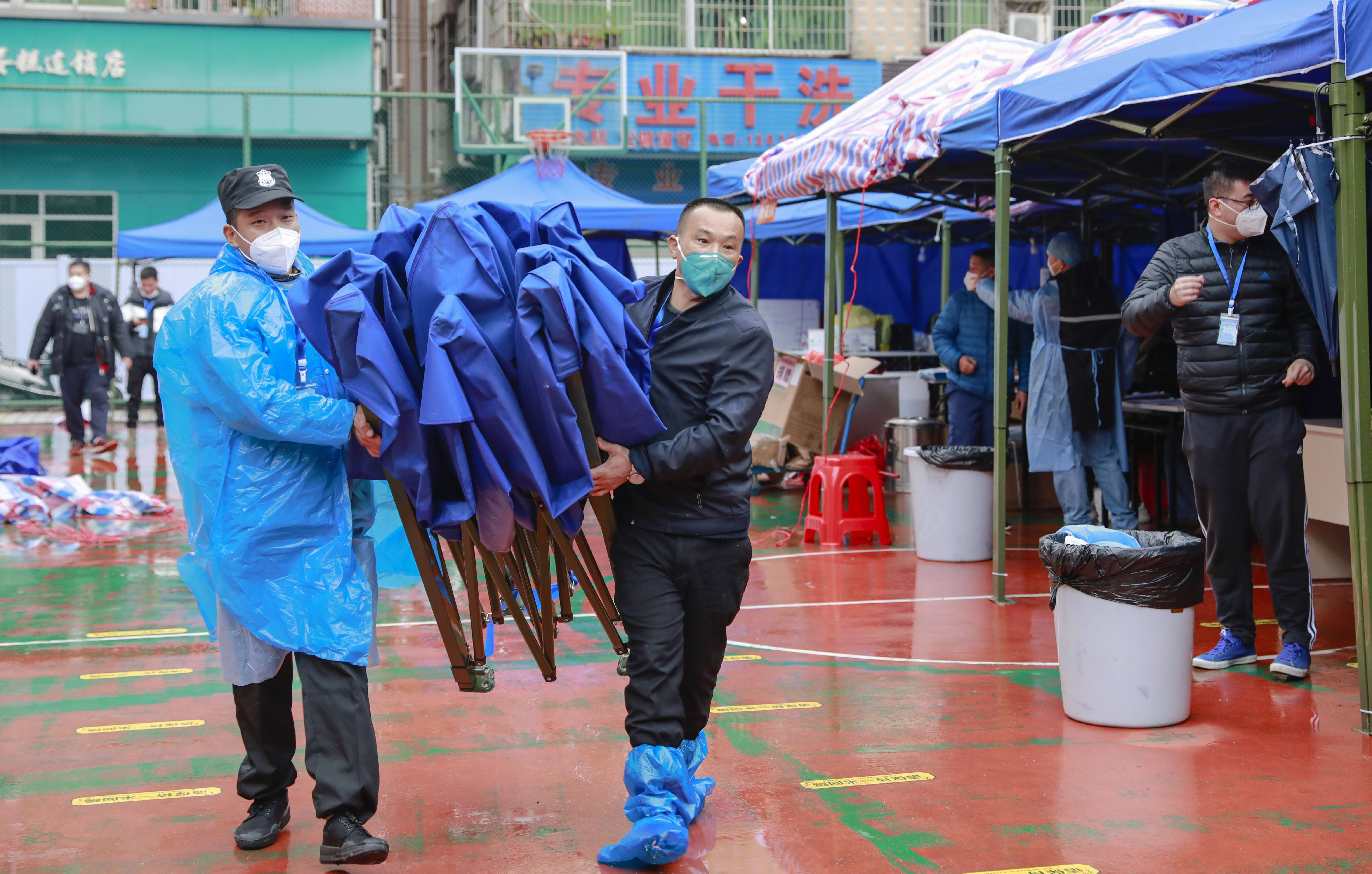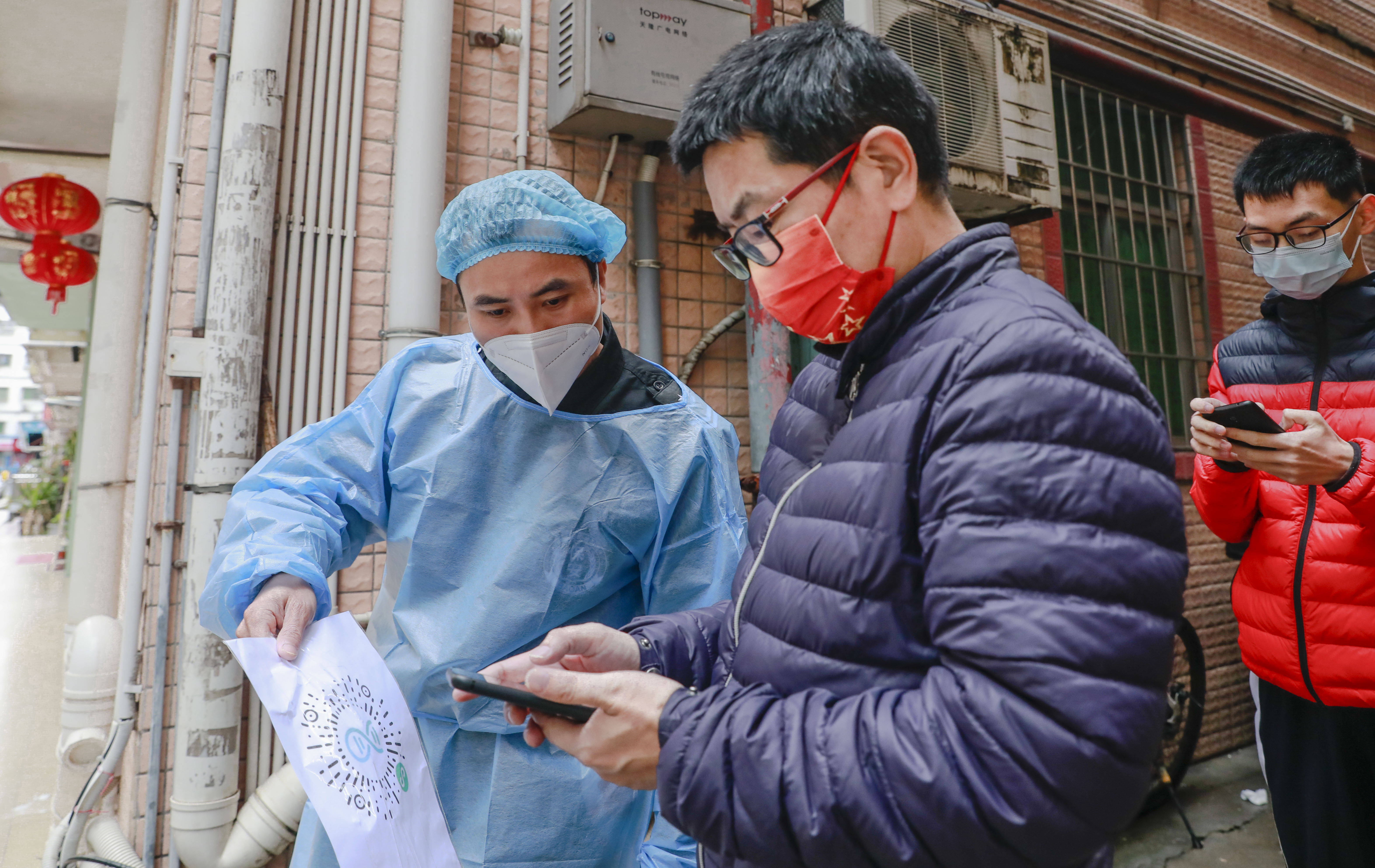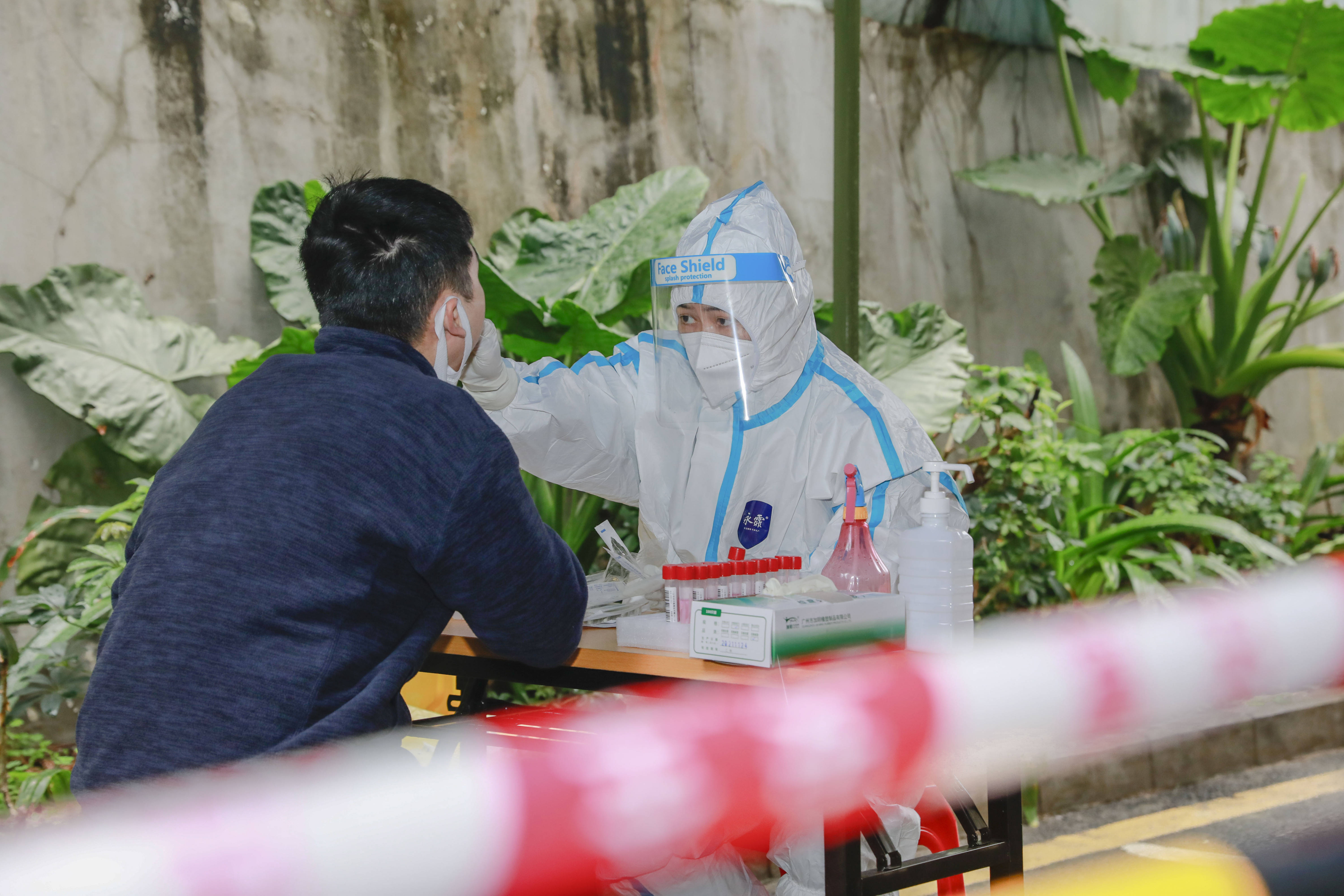 在五和社区,社区书记袁建荣带着工作人员向居民发放一次性雨衣,为现场医护人员和志愿者们端上了姜茶;在万科城社区,居民做完核酸采样后都会真诚地说一句“过年好,辛苦了”。