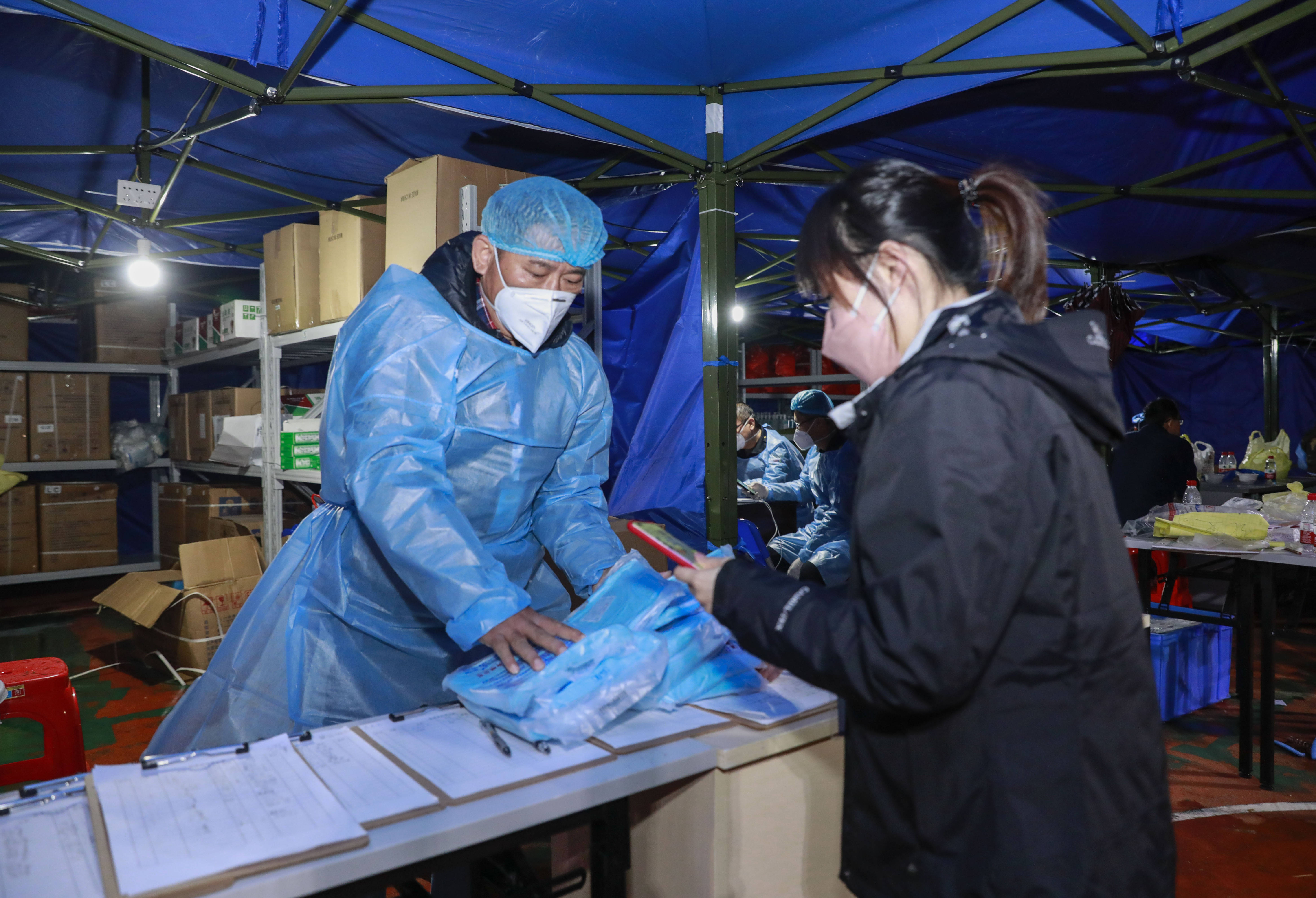 该封控管控区内有133栋房屋、1500多居民。临时指挥部设在马蹄山小区的救灾帐篷里。伴随着降温降雨,天气阴冷,来自街道、社区、公安、医务、公卫的工作人员除夕夜里已经动员起来,部分居民也在年三十夜里主动接受了核酸检测。