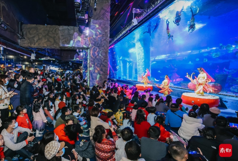 虎年春节,广州正佳广场观看演出的游客。南都拍客 东田 摄(广州正佳广场供图)