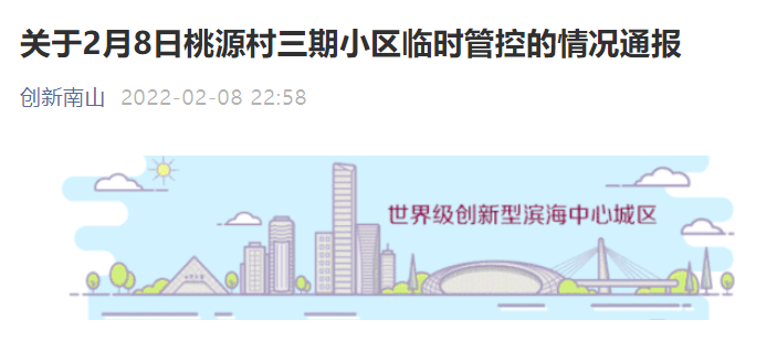 据@桃源街道办事处 发布,2月8日上午,桃源街道对桃源村三期一楼栋进行临时管控,并准备开展相关楼层的核酸排查,桃源村三期物业管理处 未经核实发布不当通知。8日傍晚,桃源村三期相关楼栋的管控措施已解除。