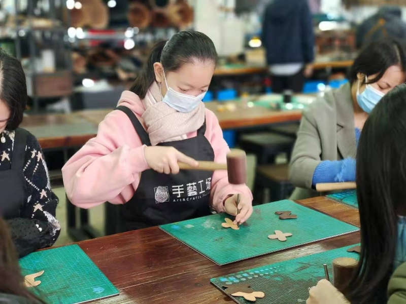 观澜湖手艺工场在春节期间推出非遗“庙会”,文创潮牌展、石版画展、国潮艺术品展,再加上各类新春主题手作体验,整栋楼布满了新年“彩蛋”。近日,元宵元素又被加入进来,特别是在纸艺体验室,50余个传统纸艺灯笼悬挂在室内,繁茂的纸艺花朵、炫彩的麒麟狮子扎作错落陈列着,体验室内还专门设置了灯谜区,营造出一派祥和的元宵氛围。市民游客可以在手艺工场尝试体验纸艺莲花灯制作,或者陶艺拉坯、木艺筷子等节日特惠项目,过一个传统味道更足的元宵节。
