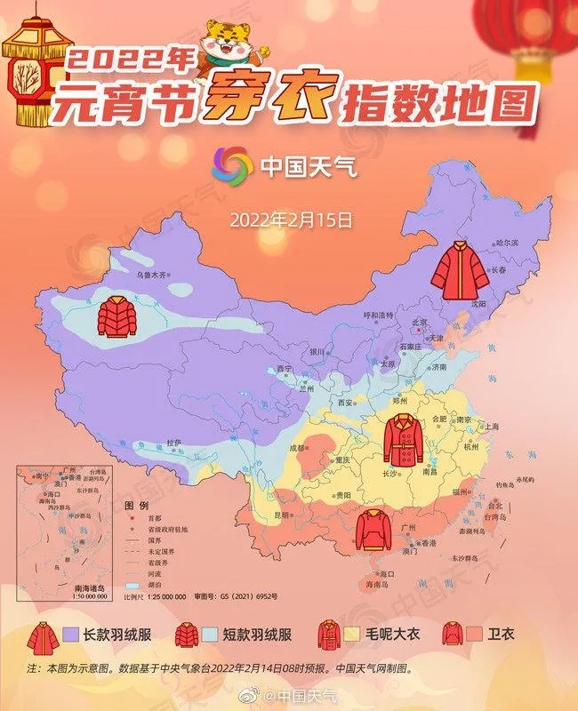 这个元宵节,你和远方的朋友分别穿什么样的衣服赏月?穿衣指数地图提前告诉你。