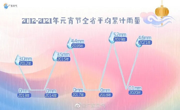 气温不定性,雨水也爱凑热闹。过去10年,有6年的元宵节广东有雨量记录,元宵夜碰上雨水,赏月赏灯的计划就只能被迫搁置。