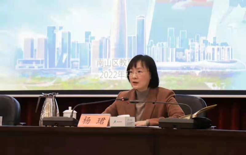 会上,南山区教育局局长杨珺公布了2022年南山教育年度重要工作,她表示,2022年是南山区也是南山教育的“提质提速提效”年,南山教育将以创建基础教育先锋城区为目标,开展“十大行动”。