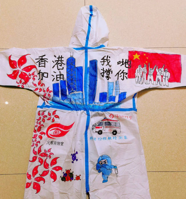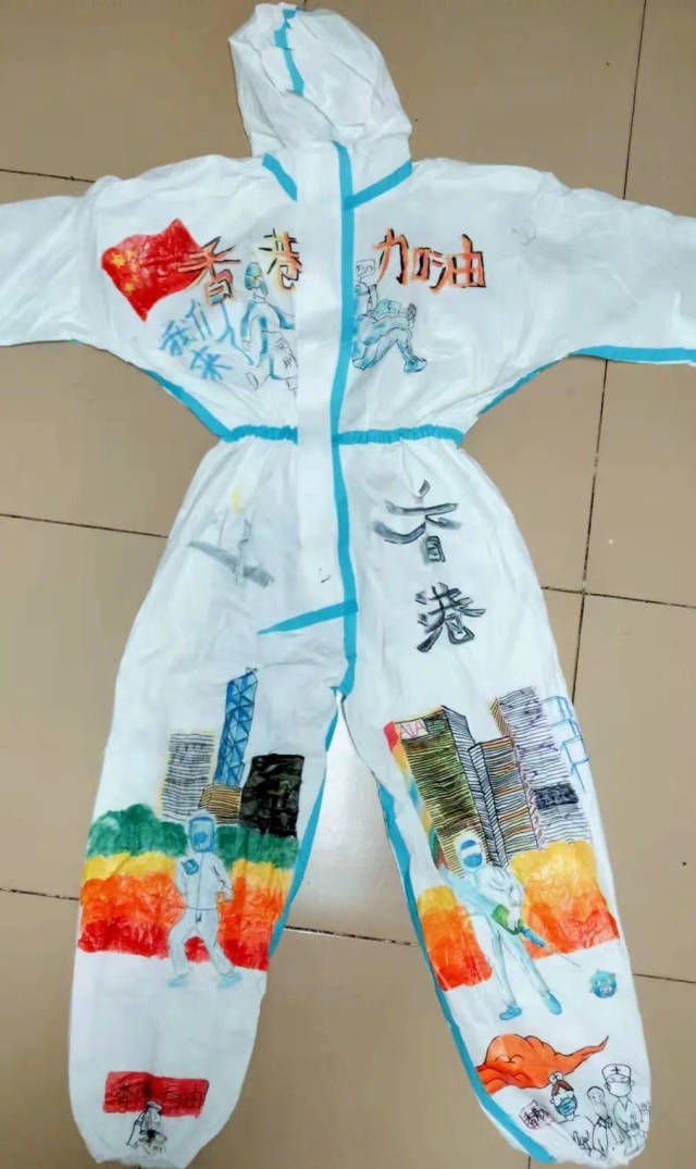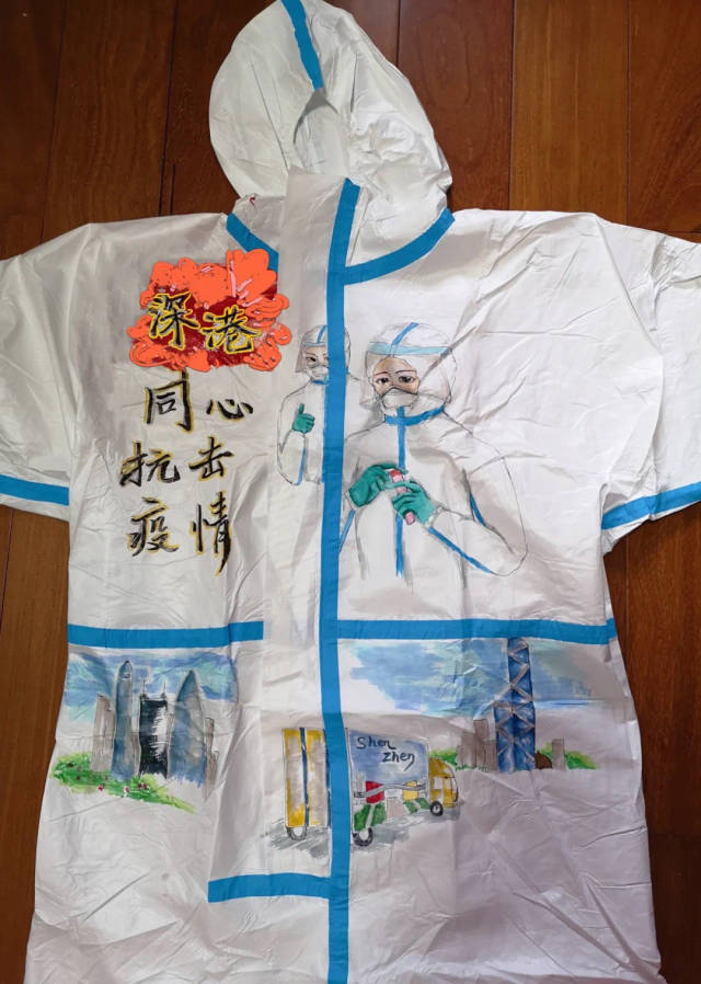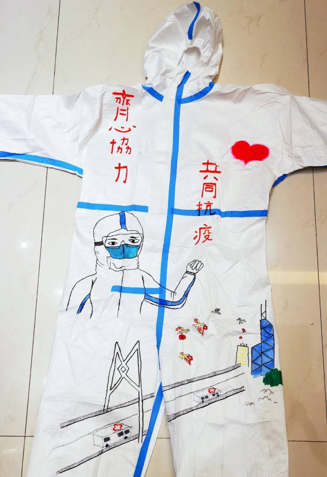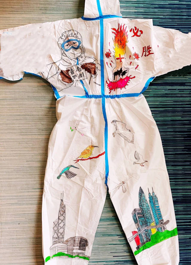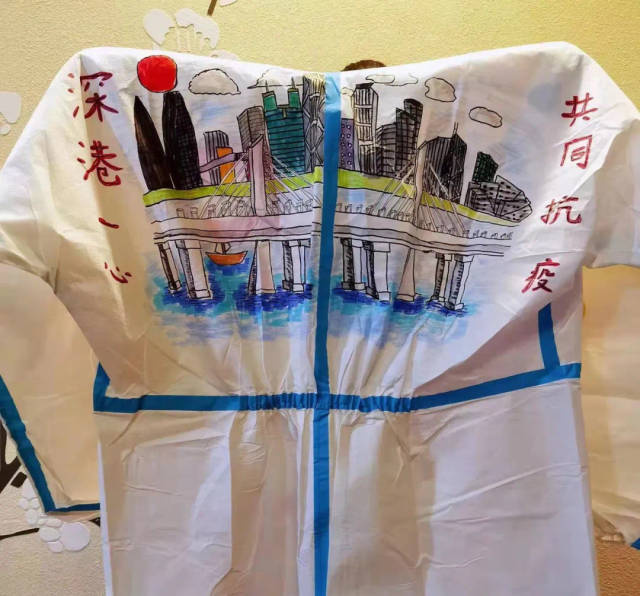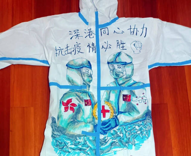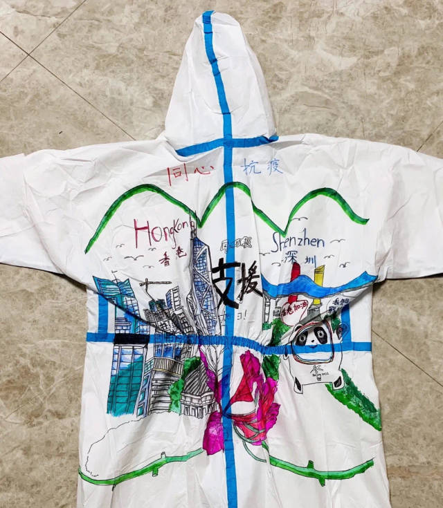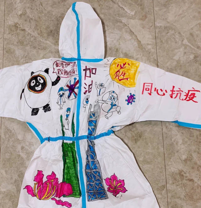 香港抗击疫情牵动着全国人民的心。为鼓舞香港同胞,传递同心抗疫的决心,深圳市龙岗区台港澳事务局、深圳市大美青少年成长发展指导中心积极组织上百名青少年儿童,参与支援香港抗疫主题绘画创作,甄选出15份优秀作品绘制在防护服上。