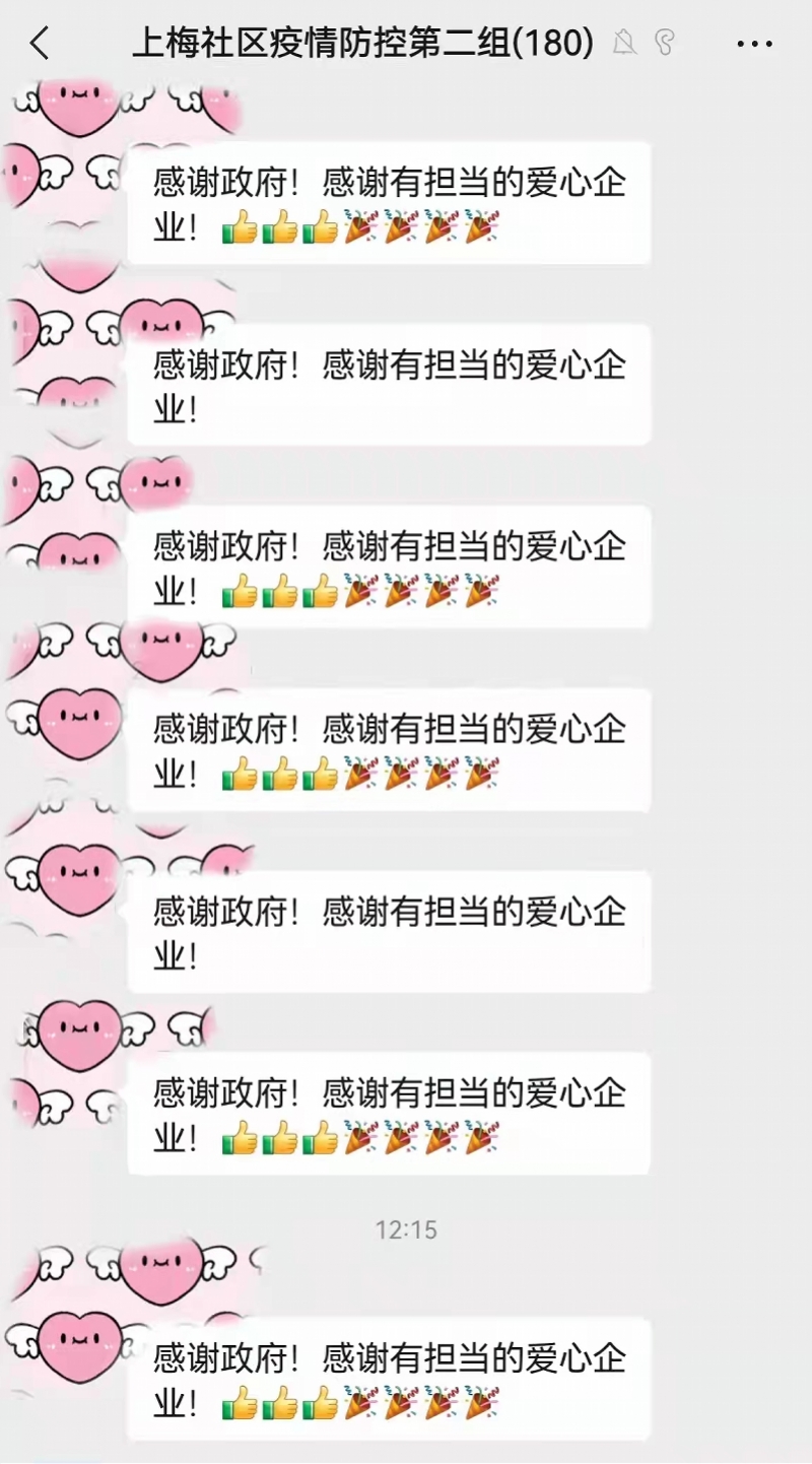 “感谢‘投喂’,你们辛苦了,也要做好自我防护。”“感谢爱心企业,感谢一直坚守岗位、无私风险的白衣天使们”,居民群内好评如潮,既是对“新鲜”“精准”菜品的点赞,也是对一线防疫人员辛苦付出的点赞。